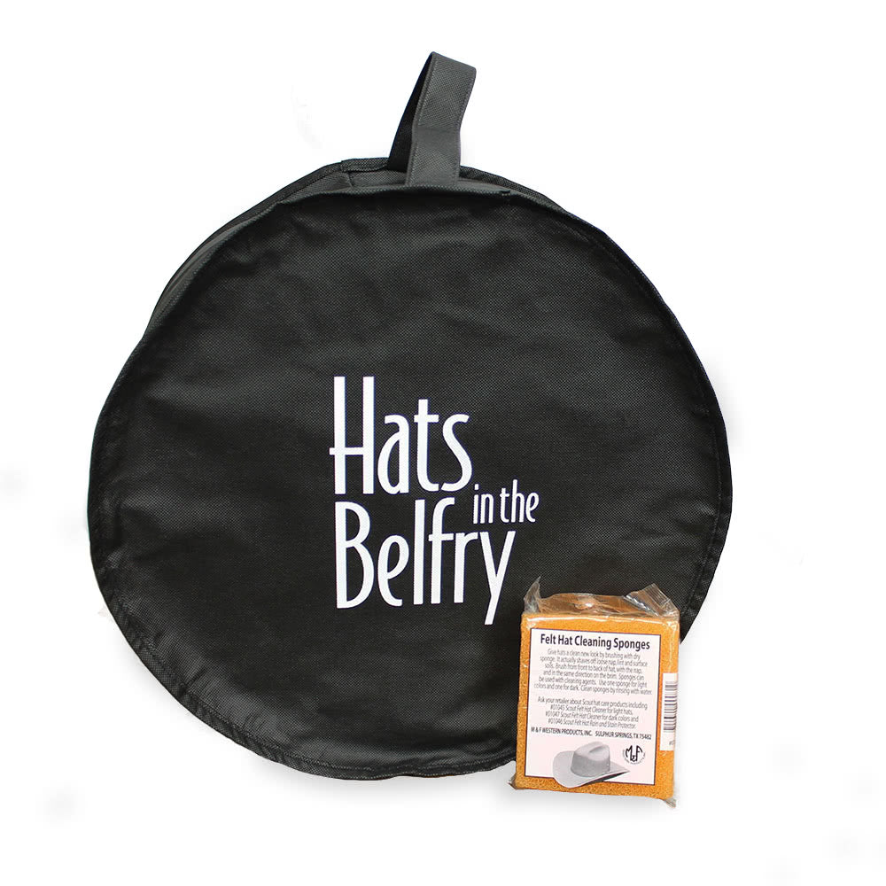 Protect your perfect hat for years to come with the Hats In the Belfry Care Set - includes Magic Hat Sponge and Travel Hat Box. Effortlessly pull away lint and dust from any felt hat with the Magic Hat Sponge. Use the Travel Hat Box to protect your hats from dust and damage.
