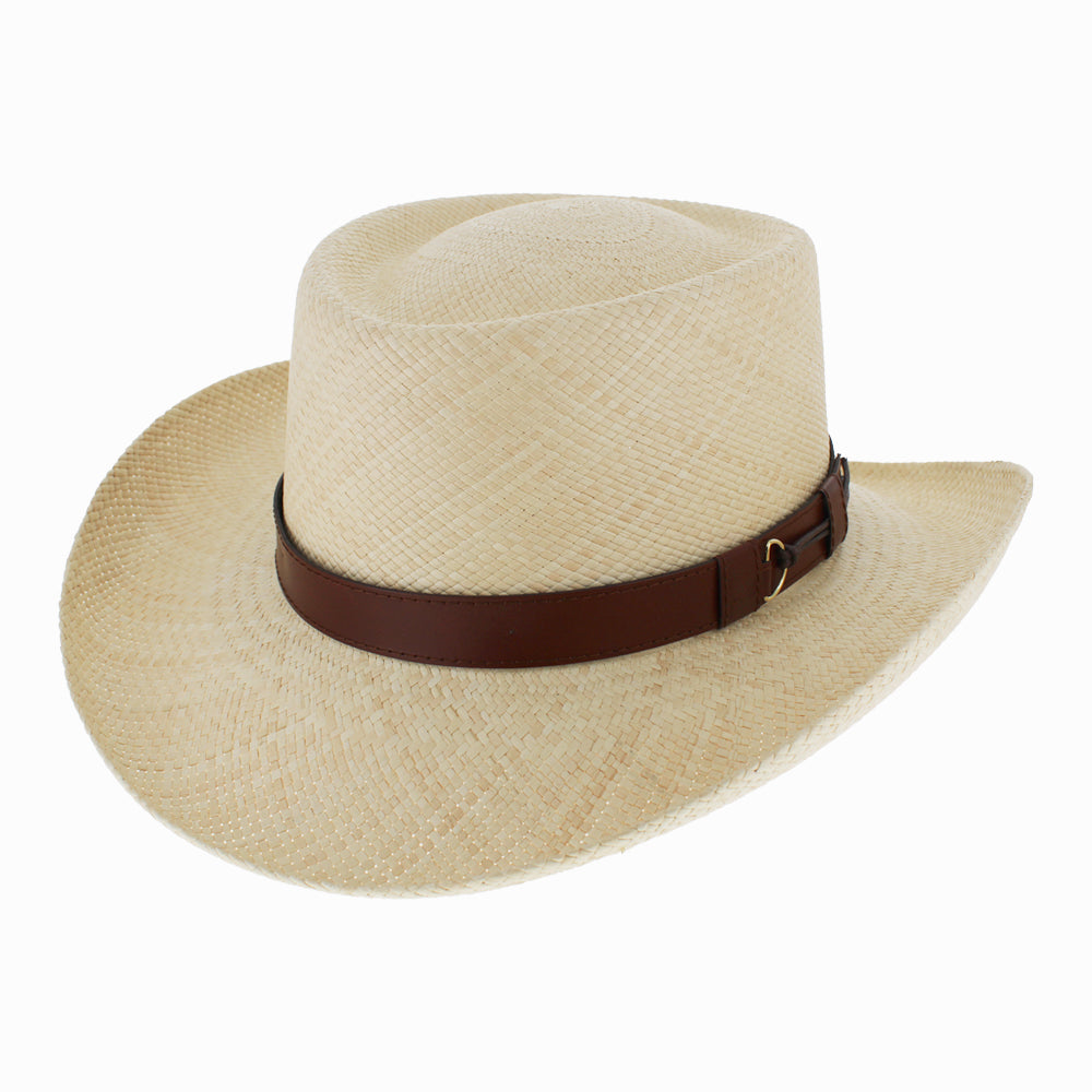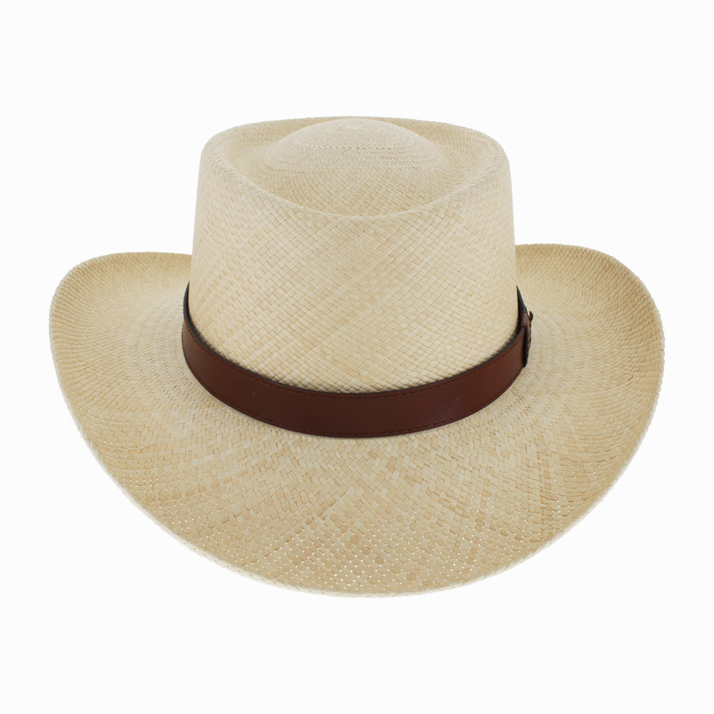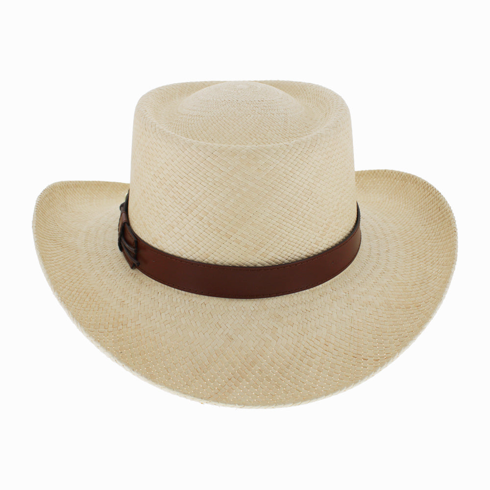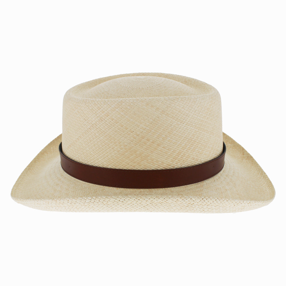 Crafted from Genuine Panama straw, the Belfry Bernardo delivers timeless style with its classic gambler silhouette. The structured crown and wide brim offer excellent sun protection, while the faux leather band adds a touch of sophistication. Handmade for Belfry, this hat combines traditional craftsmanship with everyday wearability - perfect for warm weather adventures or casual outings.