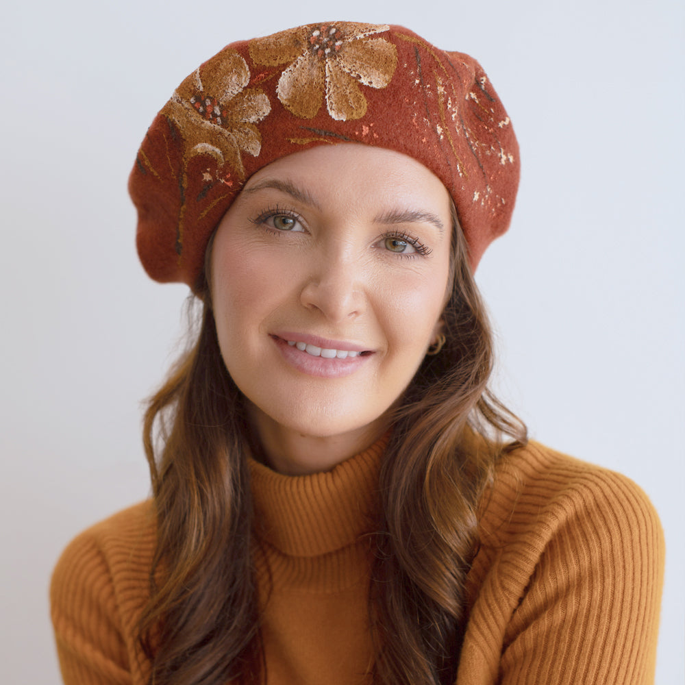 The Belfry Verrazza is a 100% wool tam beret handcrafted by the artisans at Complit Hats of Italy. It features hand-painted flowers and leaves as an accent. Due to its hand-painted nature, no two designs are exactly alike and each one features the Italian artisan's own personal touch, making them truly wearable art! The Verrazza also happens to make a perfect travel companion, being completely crushable while retaining its shape.