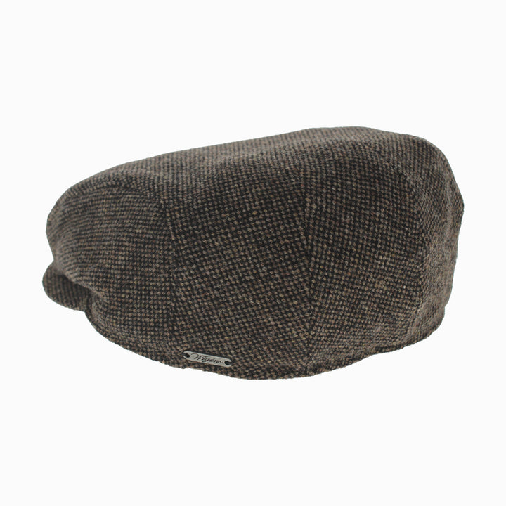 Over 100 years of experienced craftsmanship and fine tailoring has gone into the production of the Wigens Quinn, a classic flat cap (also known as an ivy or driver style). Made of hand picked virgin wool, in a simple nail head pattern of brown and black, the Quinn will add traditional, timeless style to winter attire. Drop down ear flaps tuck neatly inside when not in use. Completely handmade from the first detail to the last, the Quinn offers a mid-curved peak and rounded side seams for a traditional silhouette and good head coverage. The interior is fully lined for maximum comfort.