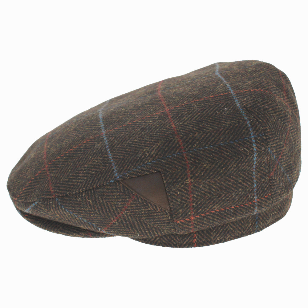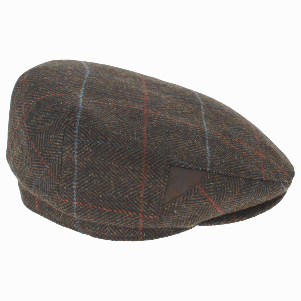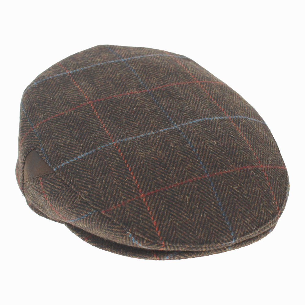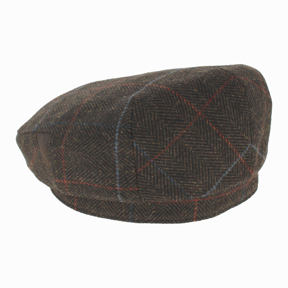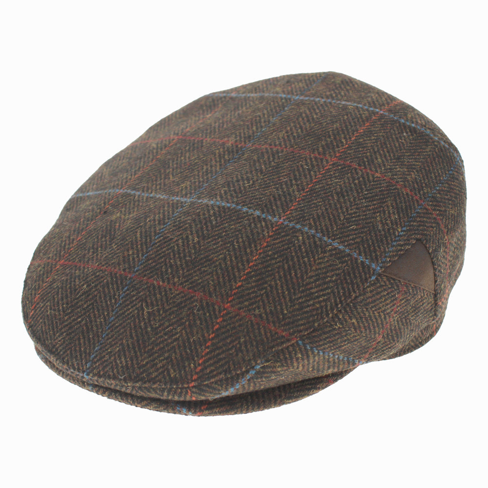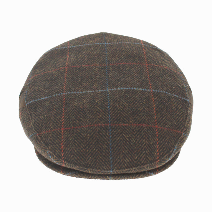 Brown Belfry Jake wool blend flat cap, modern ivy style with plaid overlay