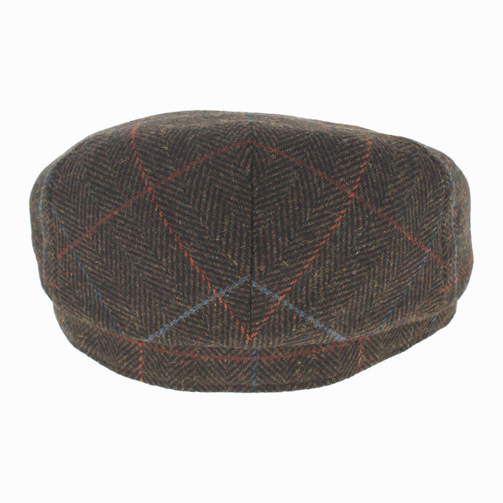 Belfry Jake brown wool-polyester flat cap with herringbone and windowpane plaid