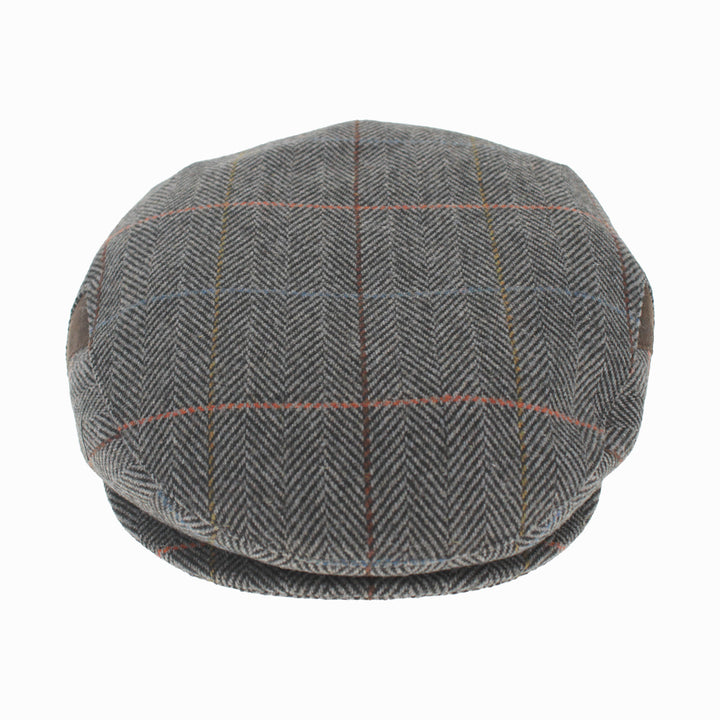 Grey Belfry Jake wool blend flat cap, modern ivy driver style with plaid pattern