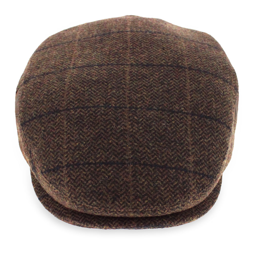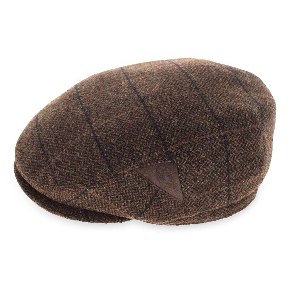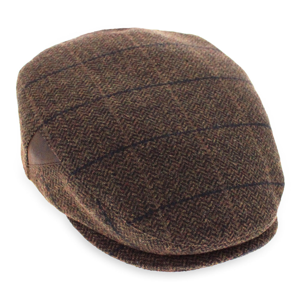 Brown Belfry Jake wool blend flat cap, modern ivy style with plaid overlay
