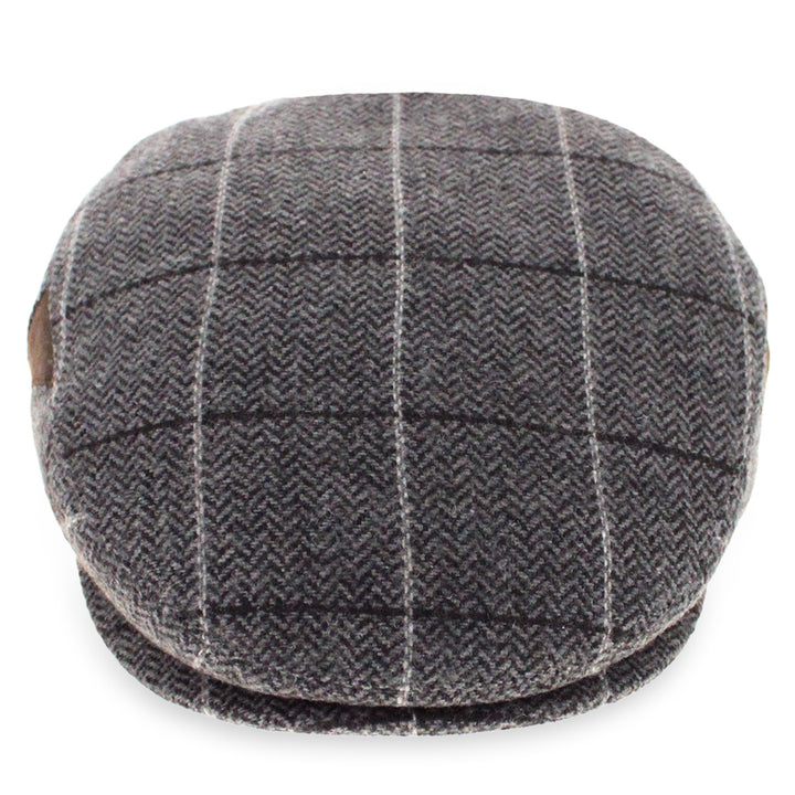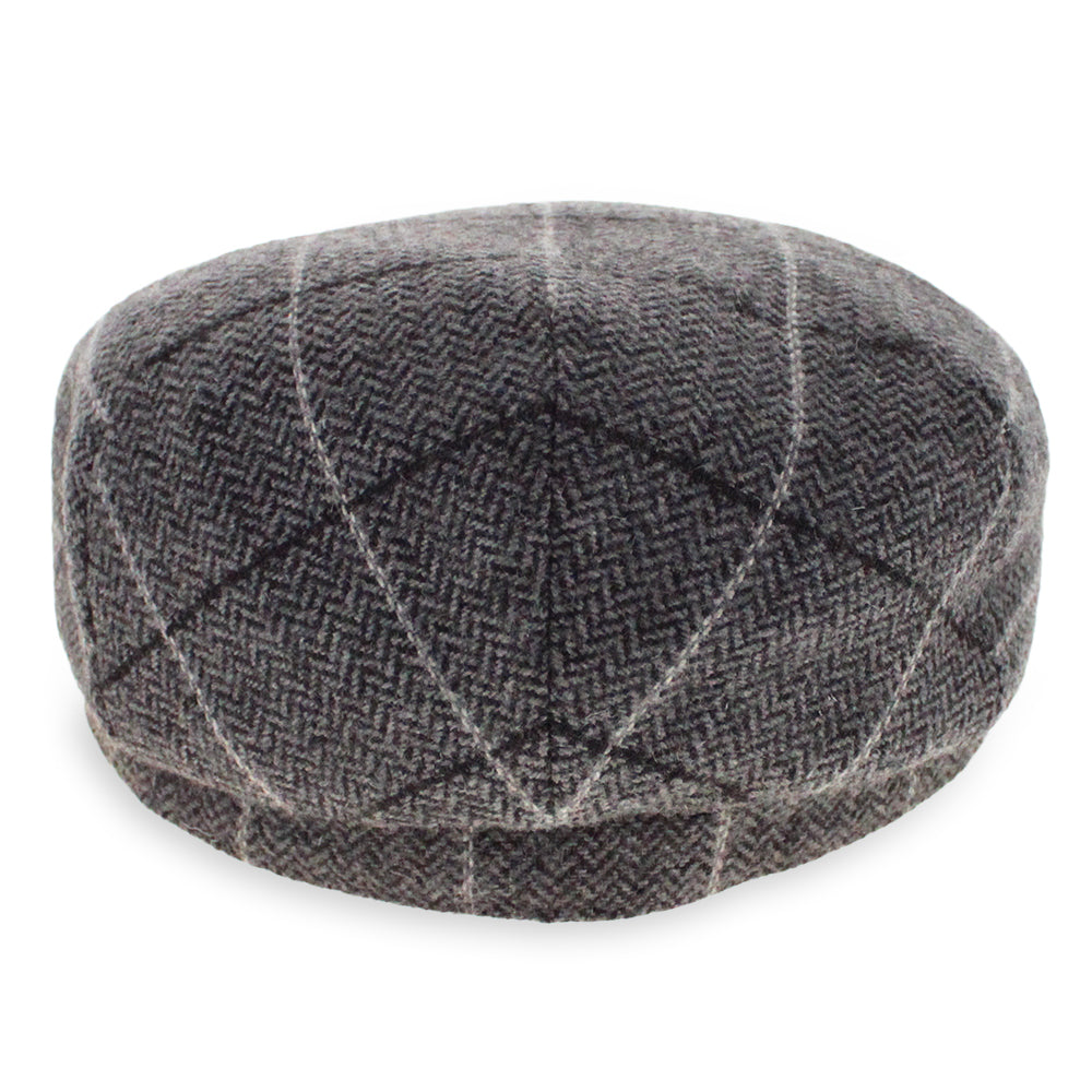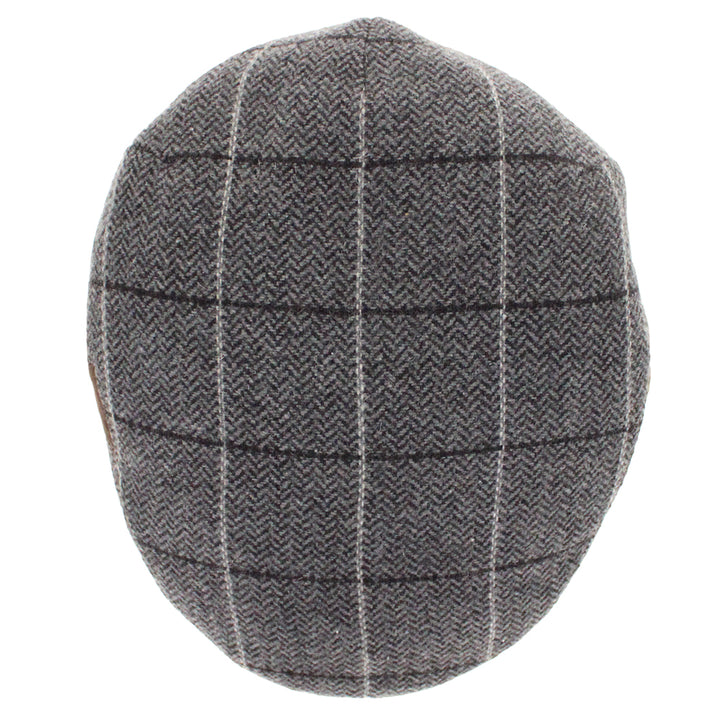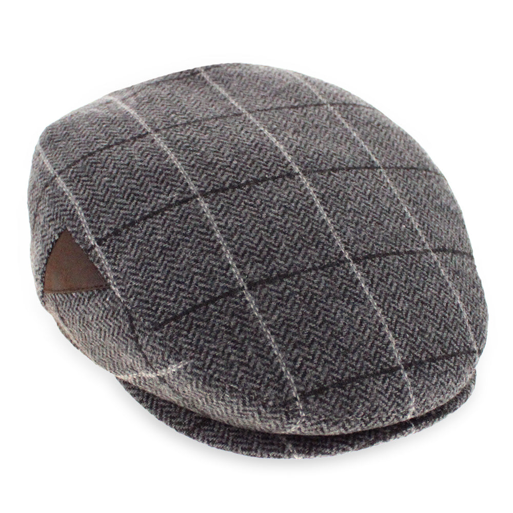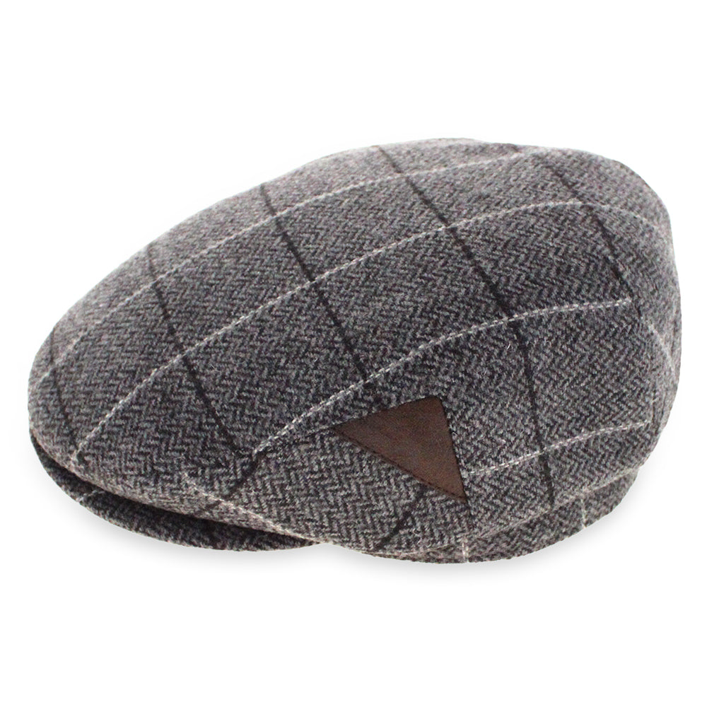 Grey Belfry Jake wool blend flat cap, modern ivy driver style with plaid pattern