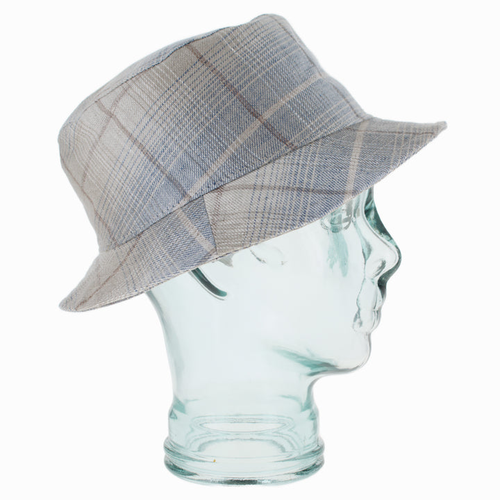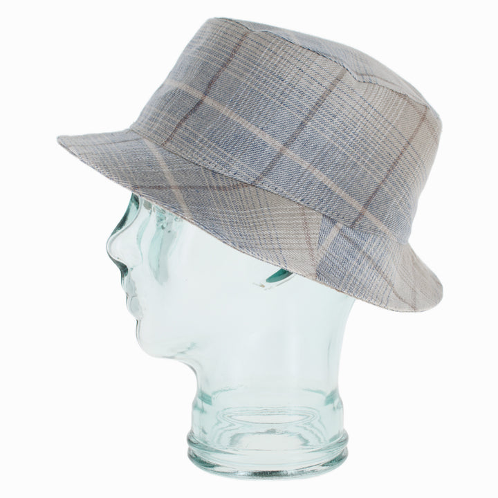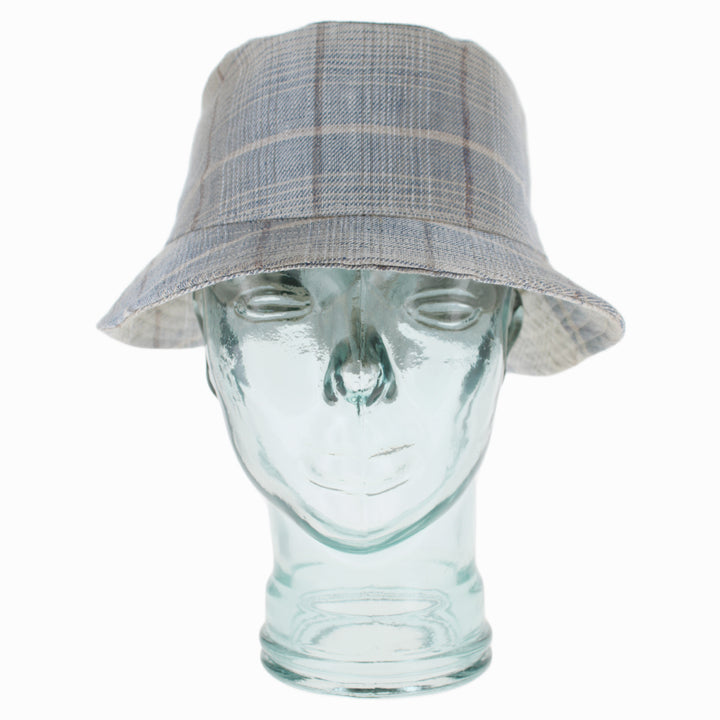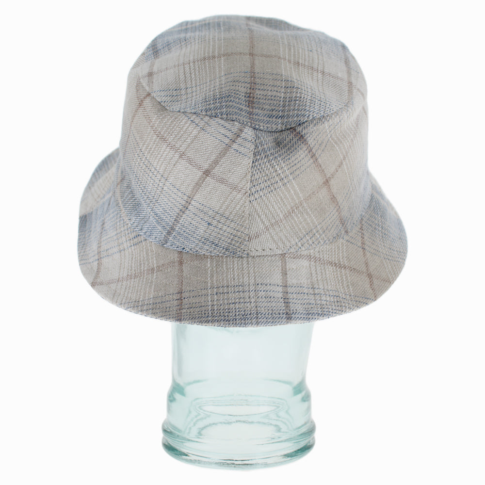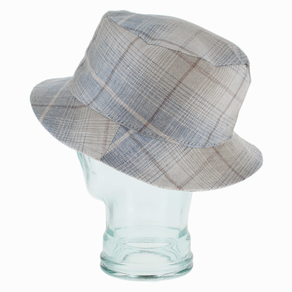 The Belfry Irmino is a bucket hat that combines practicality, comfort and fashion all in one! This casual hat features a palette of soft aqua, beige and tan in a windowpane plaid. Made of an ecologically-friendly linen/hemp blend, the Irmino is lightweight and packs easily for worry-free travel. The interior is fully lined in a comfortable soft cotton.