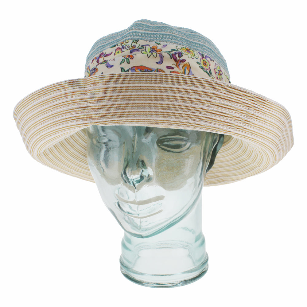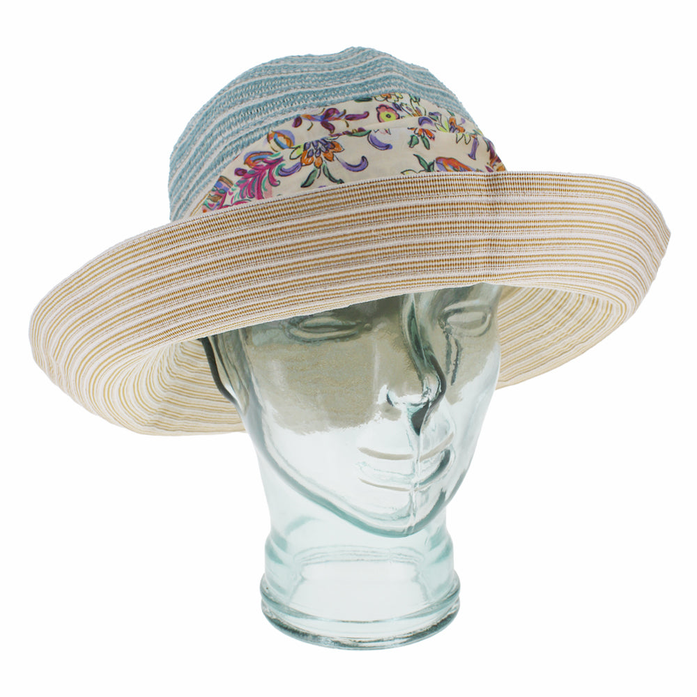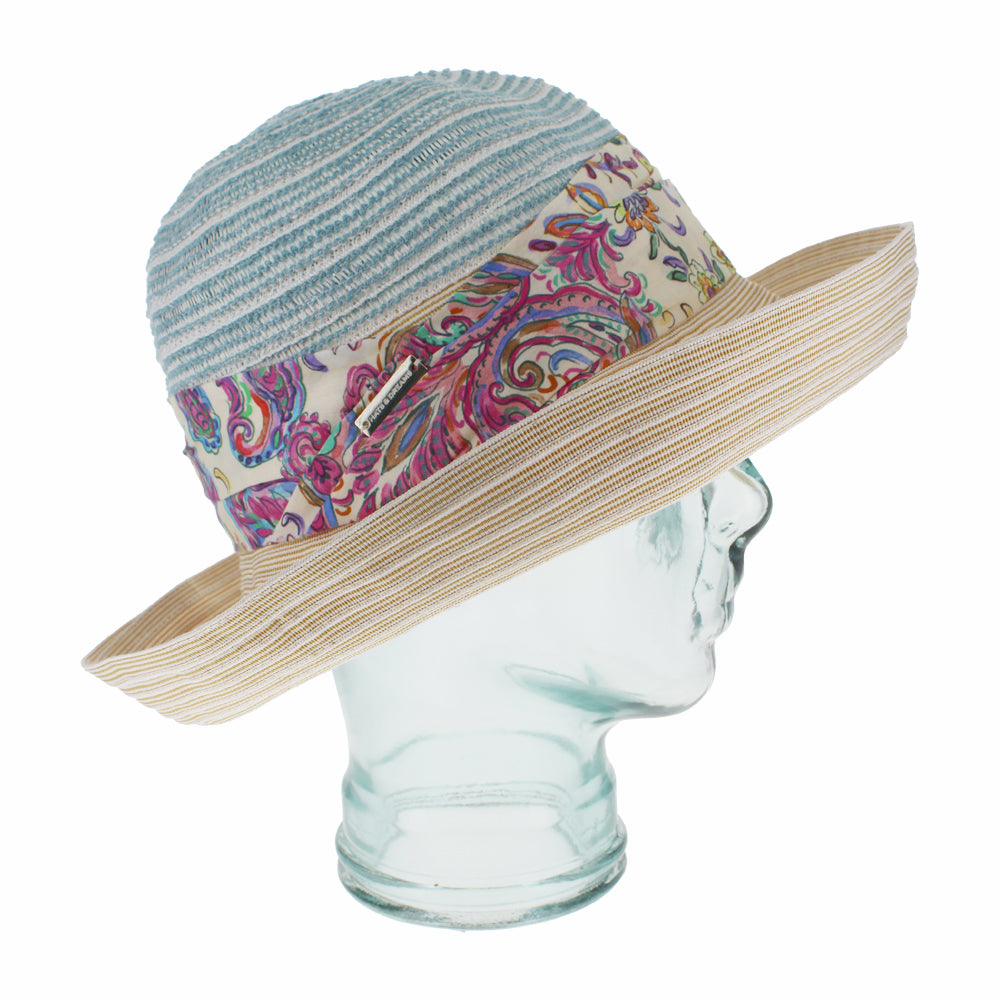 The Belfry Benedetta, with its striking blue and gold design and a delicate floral band, is a hat is sure to turn heads. Soft and comfortable to wear, its packable and lightweight design makes it the perfect travel companion, while its hidden adjuster in the back inner band provides a fully customizable fit!