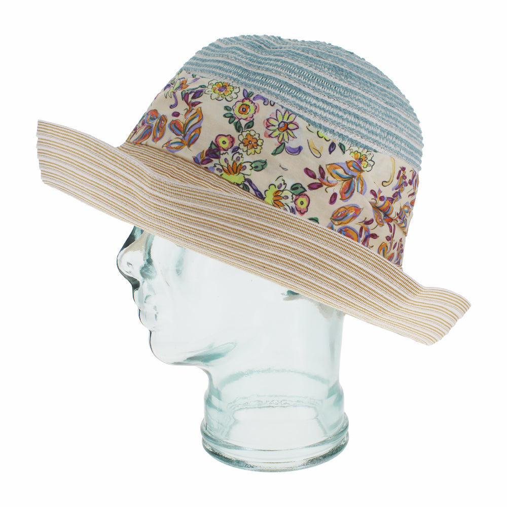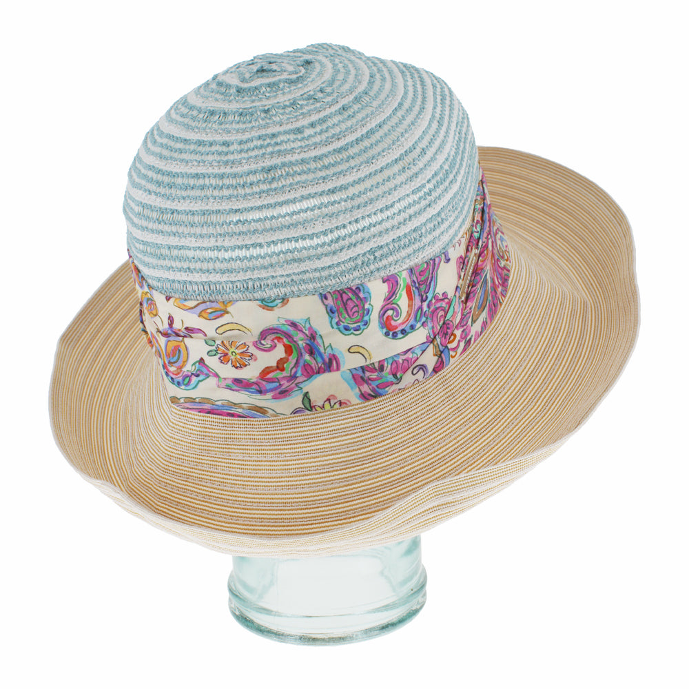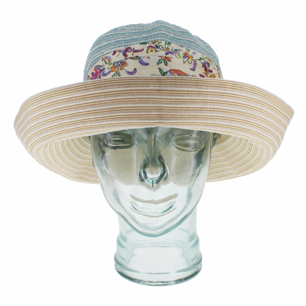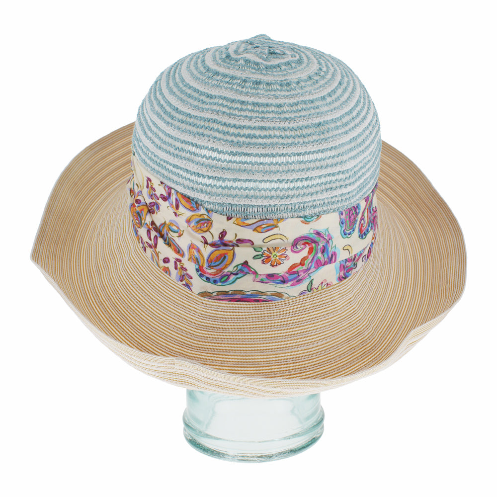 The Belfry Benedetta, with its striking blue and gold design and a delicate floral band, is a hat is sure to turn heads. Soft and comfortable to wear, its packable and lightweight design makes it the perfect travel companion, while its hidden adjuster in the back inner band provides a fully customizable fit!