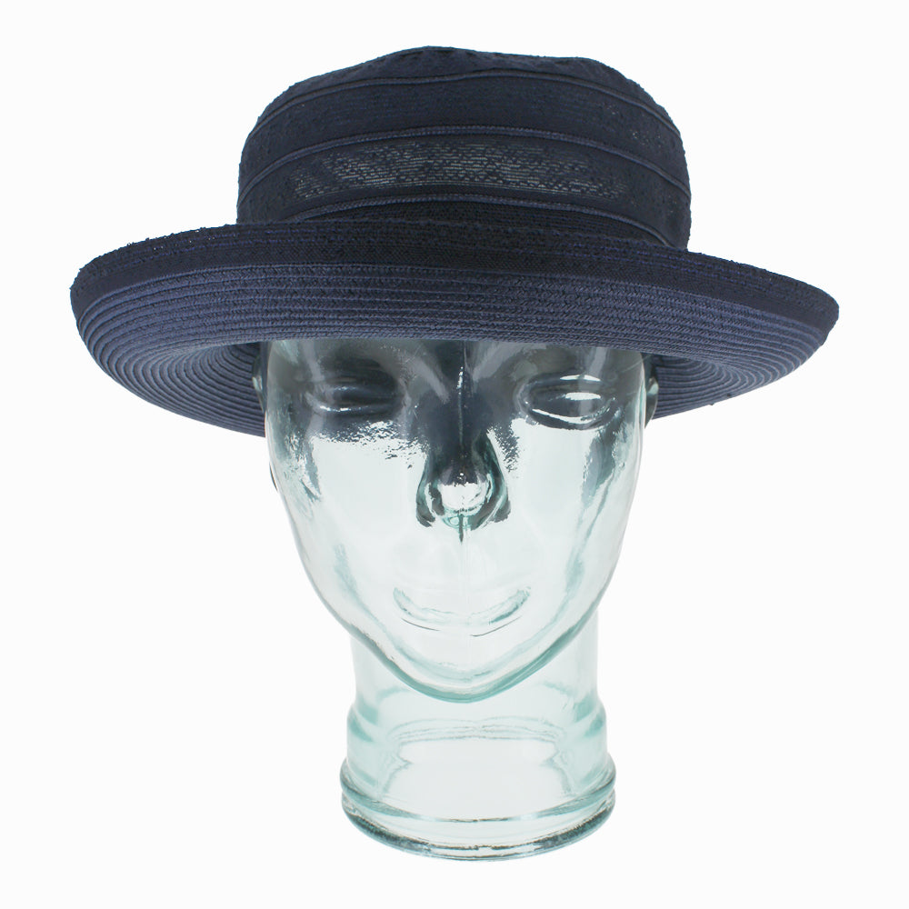 This paper braid sun hat in navy offers sun protection when commuting, running errands, or going out, while also being versatile enough to wear casually or for dressed-up occasions.