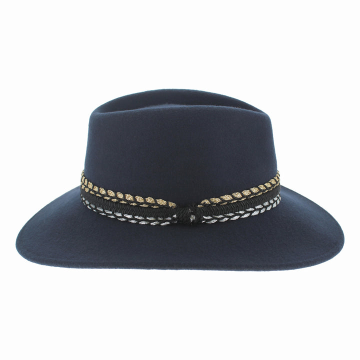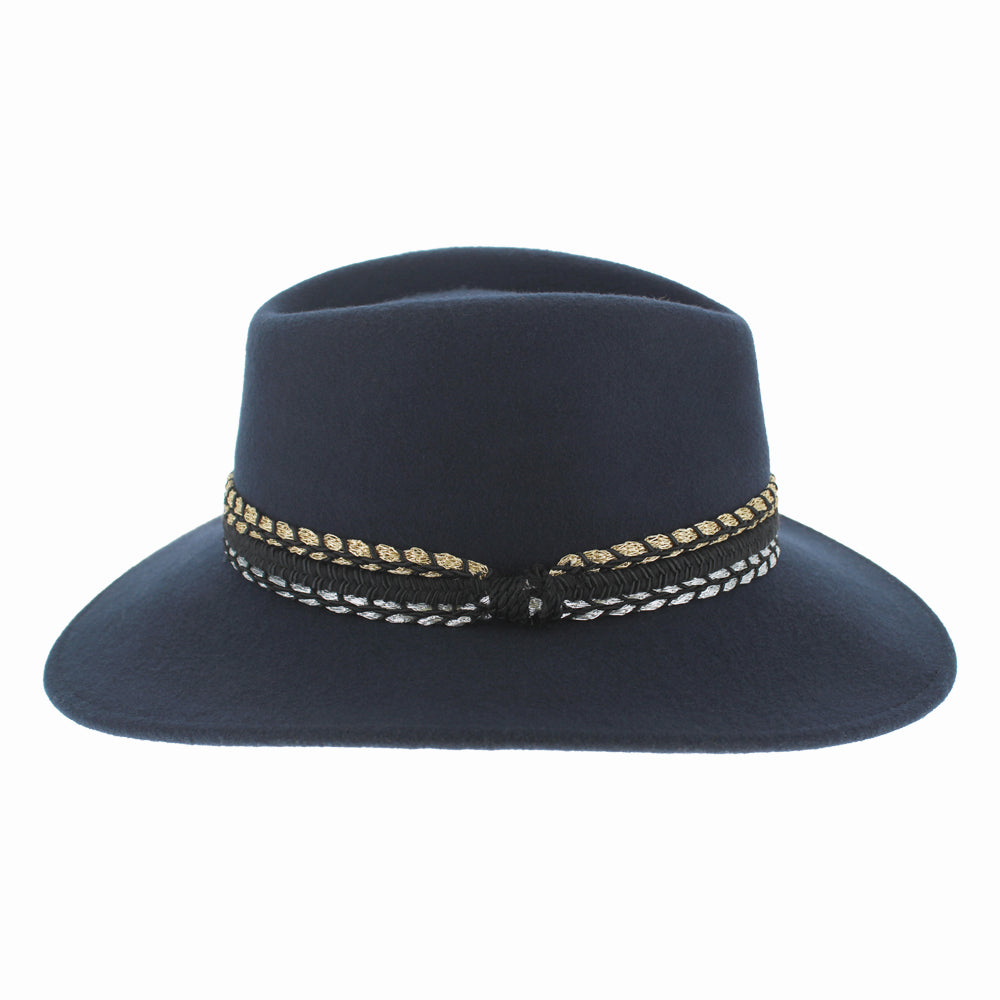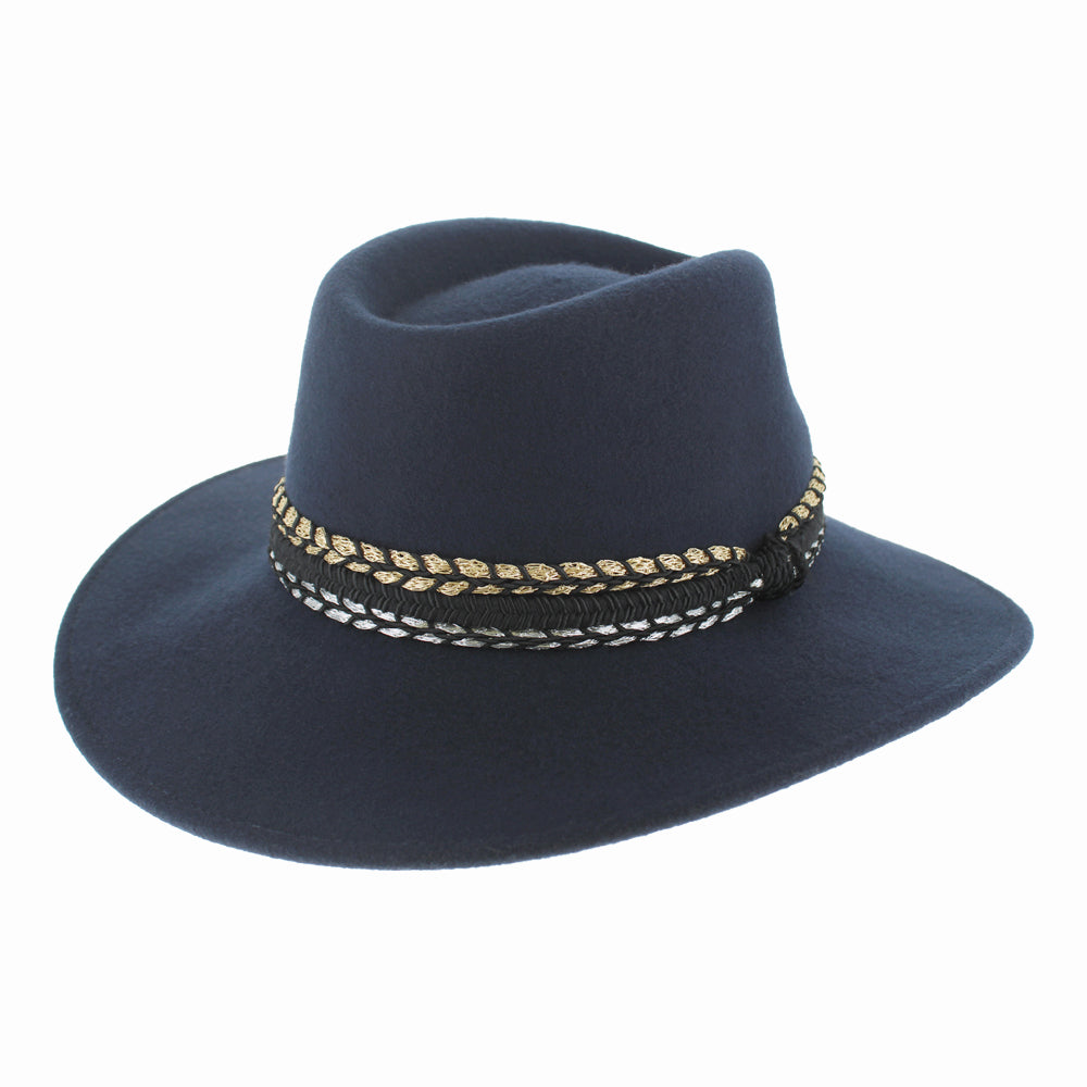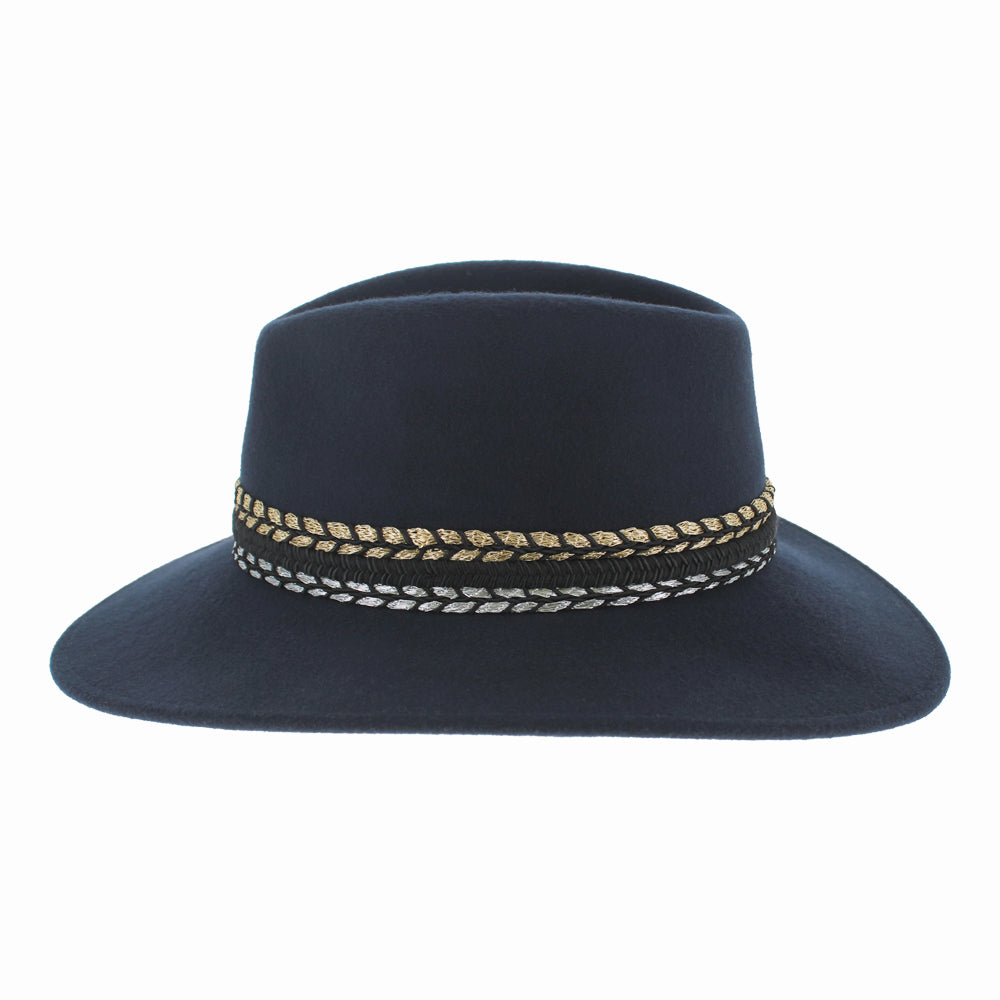 Women’s Luxury Wool Safari Fedora – Elegant Wide Brim Hat with Gold & Silver Accent Band – Stylish Wool Fedora for Fall and Winter