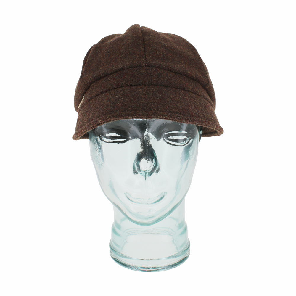 Belfry Edda brown Shetland wool mod cap with timeless 8-panel crown and button top