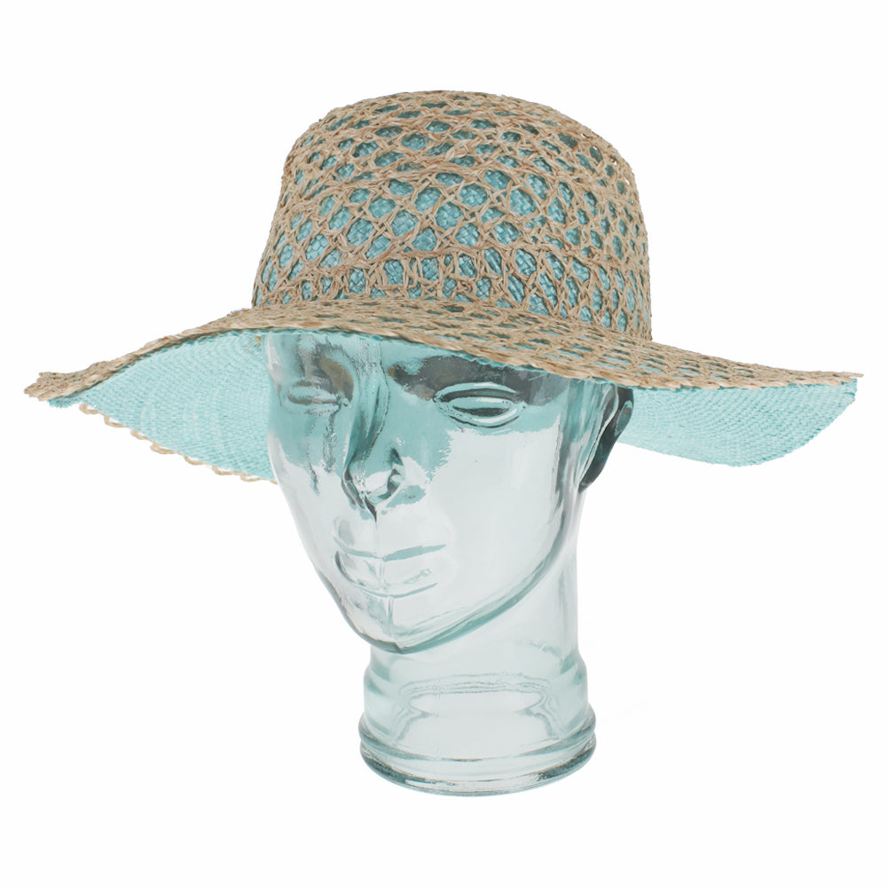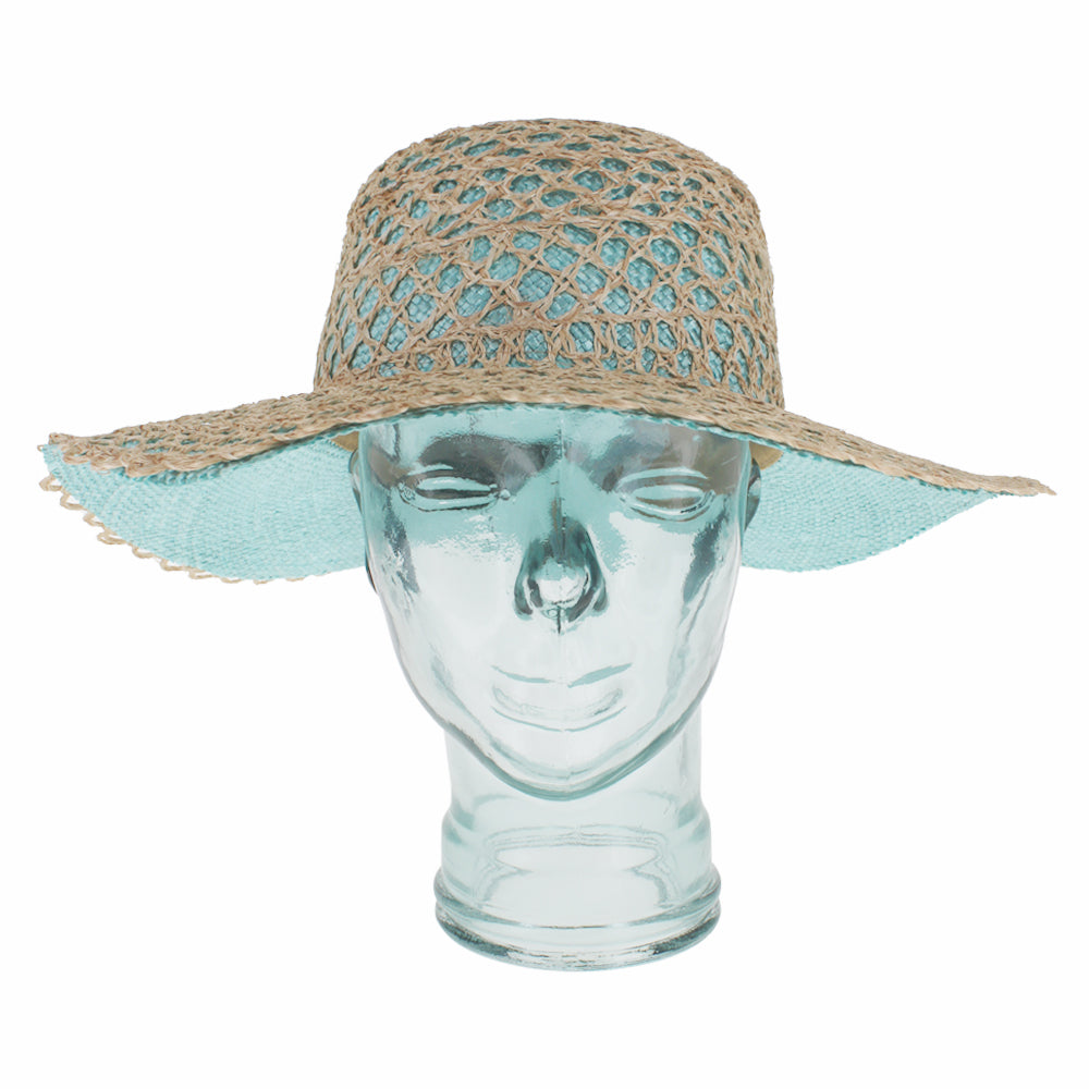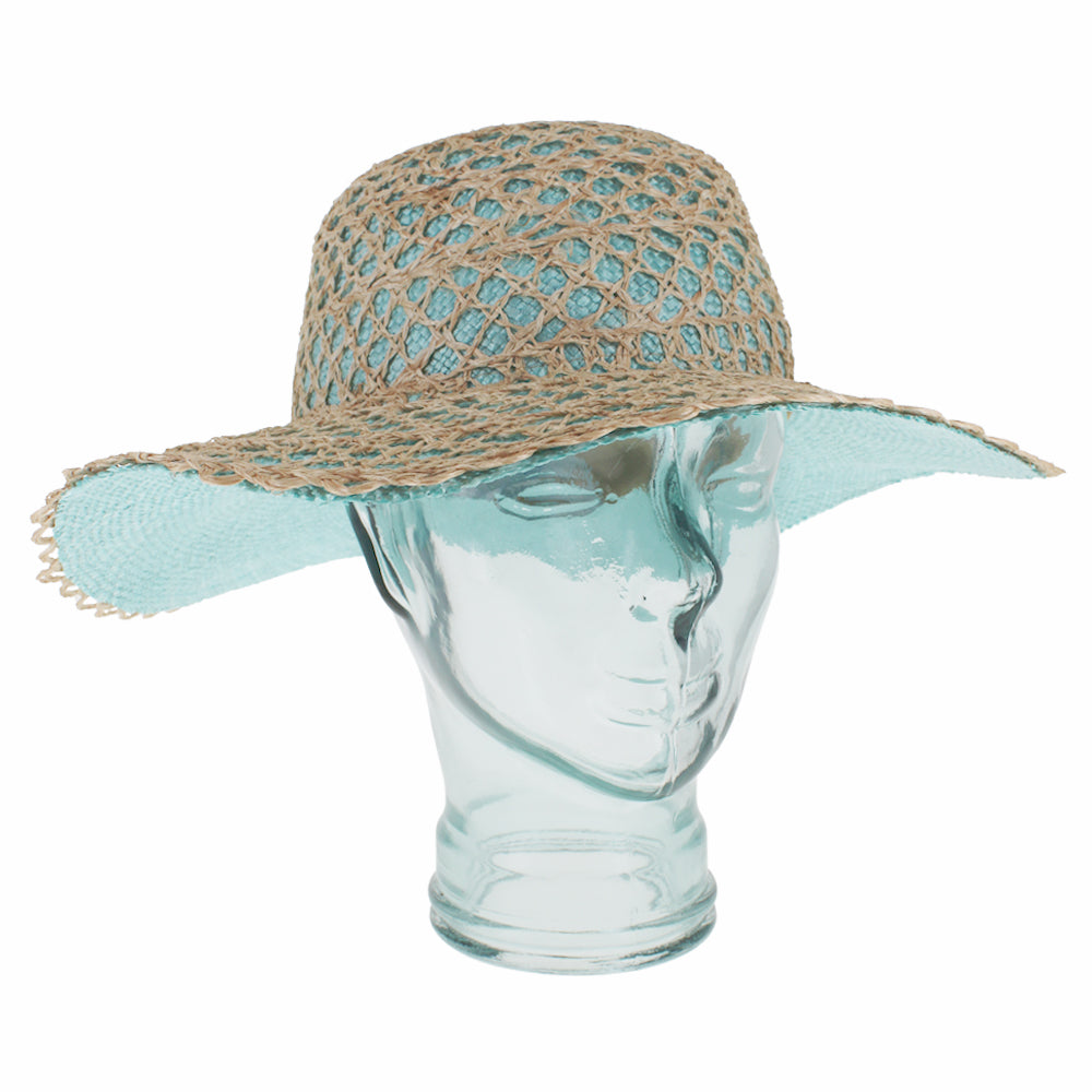 Introducing the Belfry Francesca. This handcrafted hat features jute woven over a lightweight and breathable light blue body. Made in Montappone, Italy, it's the perfect accessory for enjoying those sunny beach days in style.