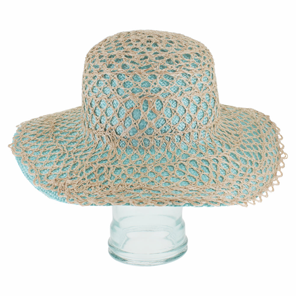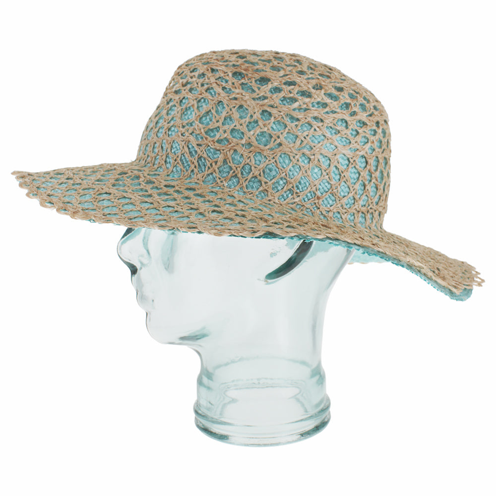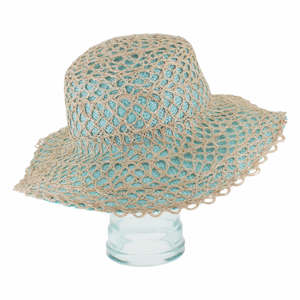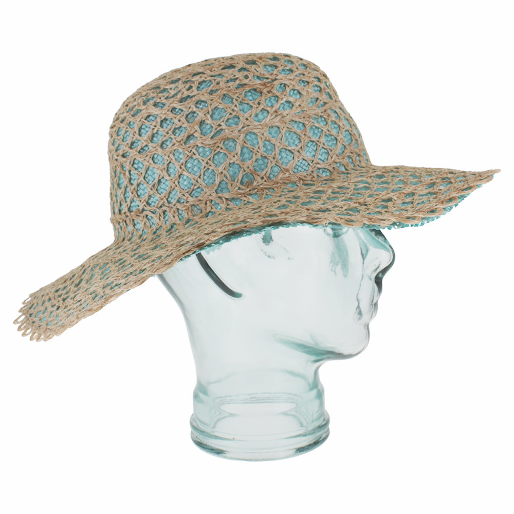 Introducing the Belfry Francesca. This handcrafted hat features jute woven over a lightweight and breathable light blue body. Made in Montappone, Italy, it's the perfect accessory for enjoying those sunny beach days in style.