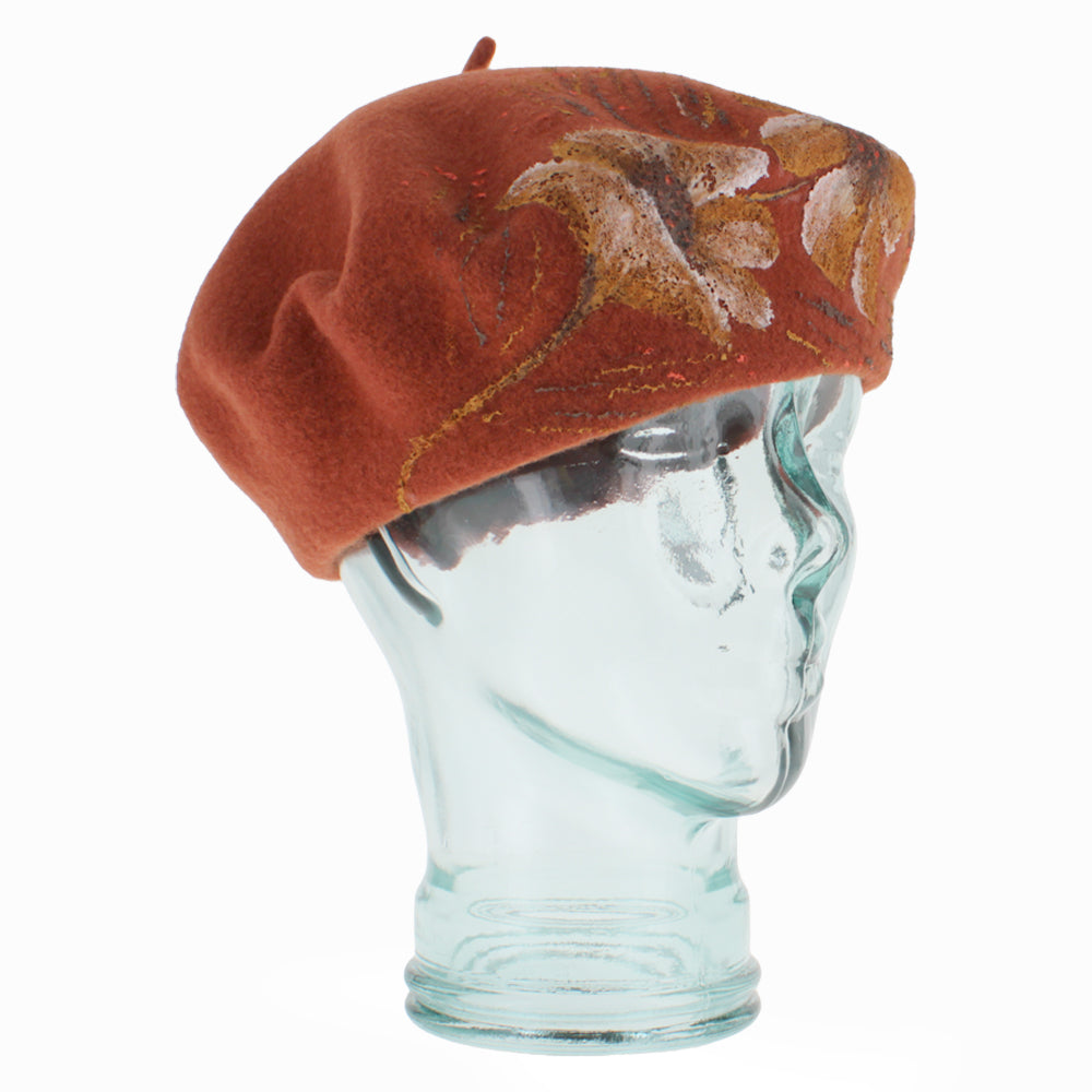 The Belfry Verrazza is a 100% wool tam beret handcrafted by the artisans at Complit Hats of Italy. It features hand-painted flowers and leaves as an accent. Due to its hand-painted nature, no two designs are exactly alike and each one features the Italian artisan's own personal touch, making them truly wearable art! The Verrazza also happens to make a perfect travel companion, being completely crushable while retaining its shape.