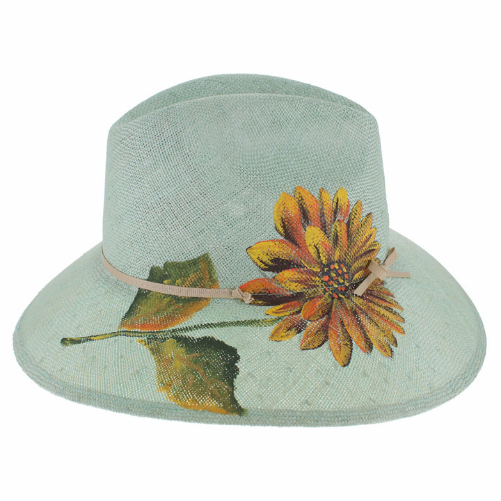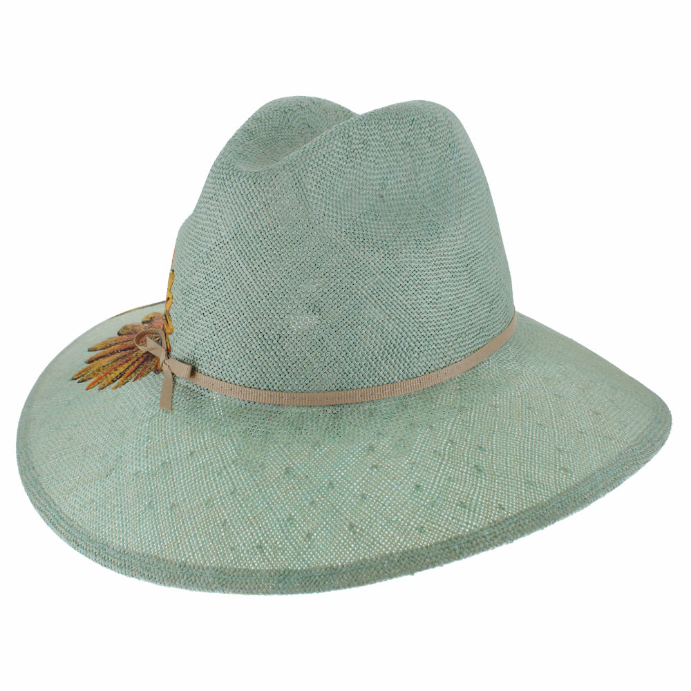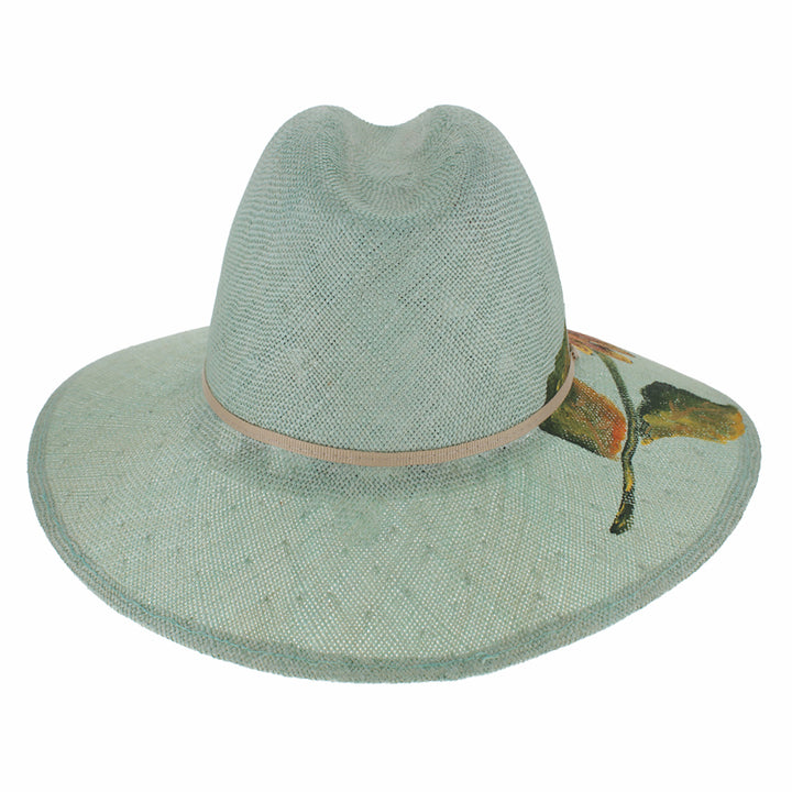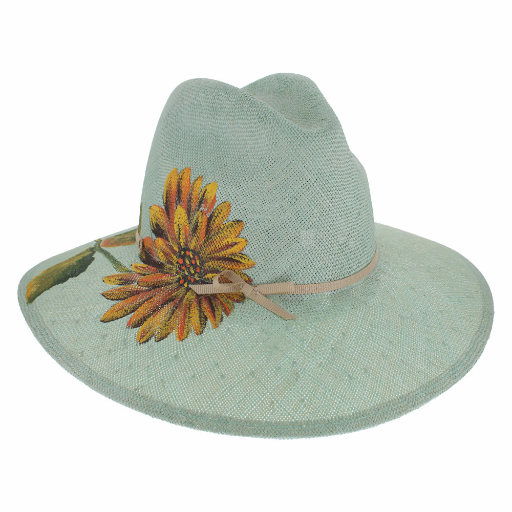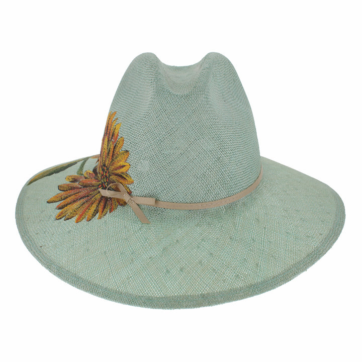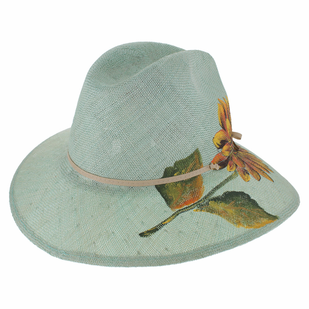 Inspired by the lush gardens of Montaponne, Italy, the artisans at Complit Hats designed and hand-painted a beautiful, bright blossom on this safari style hat. Made of lightweight sisal straw, the Belfry Nesta features a tradition center crease crown surrounded by a taupe grosgrain ribbon hat band. The wide brim offers light sun protection.