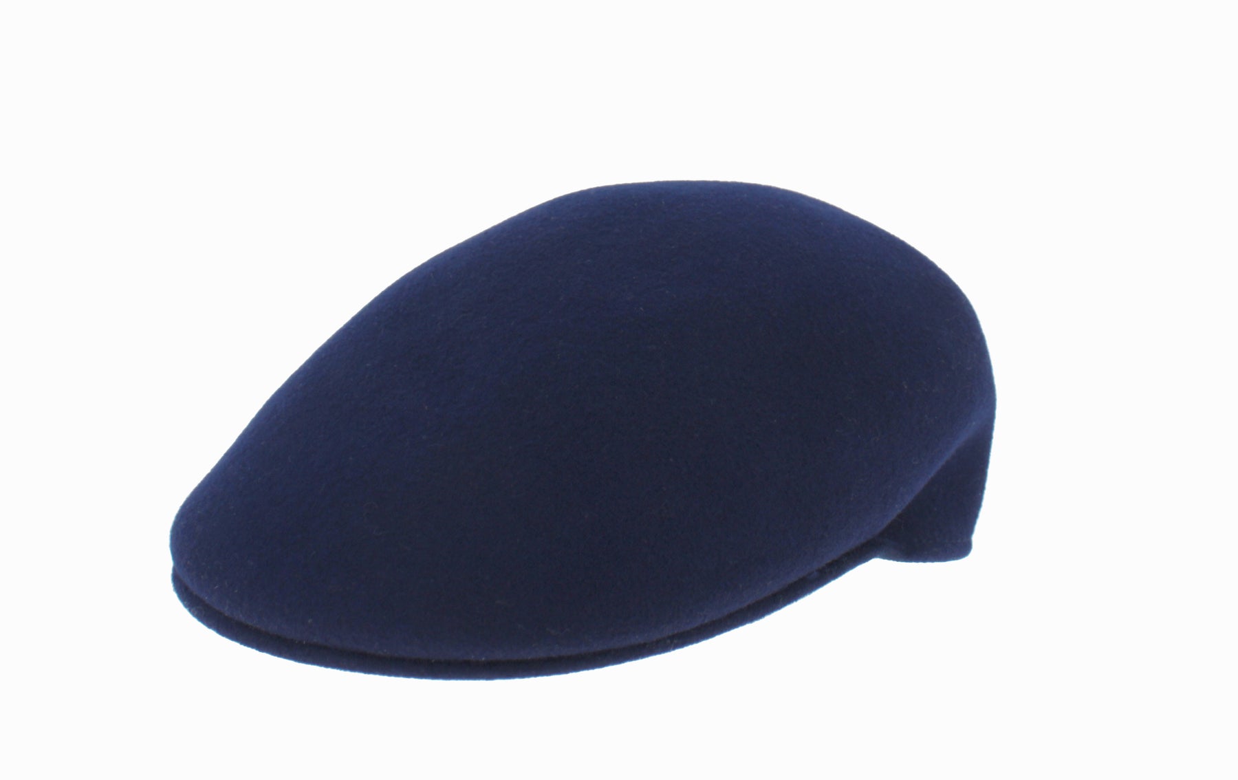 Classic Belfry Ascot navy molded wool flat cap, 100% felt design with custom fit inner band