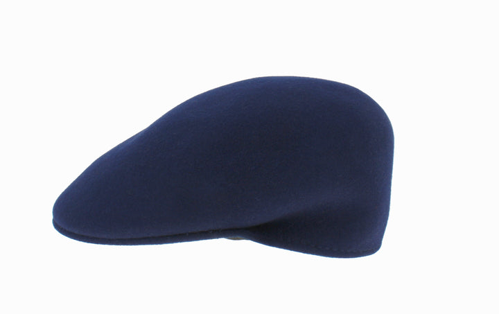 Belfry Ascot navy wool felt molded flat cap, classic ascot style with higher silhouette