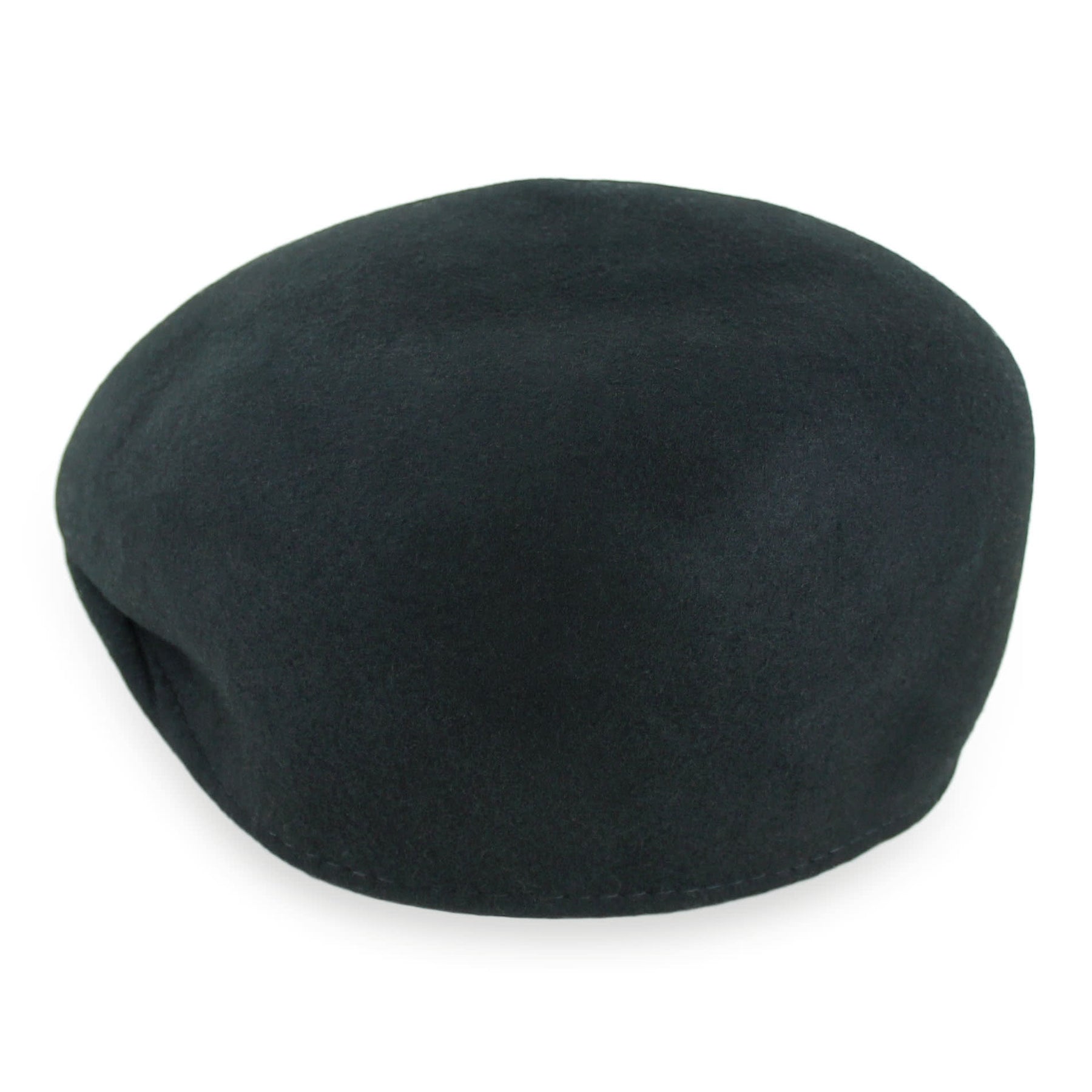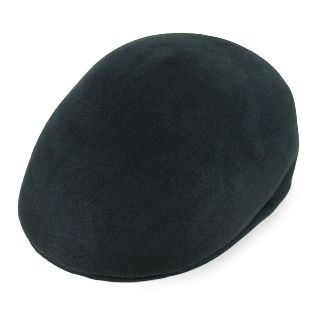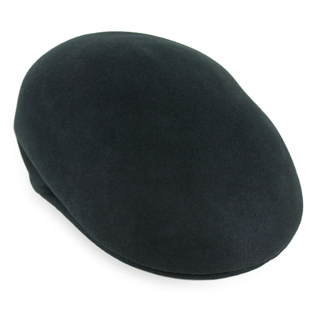Black Belfry Ascot molded wool flat cap, sturdy shape with traditional ascot design