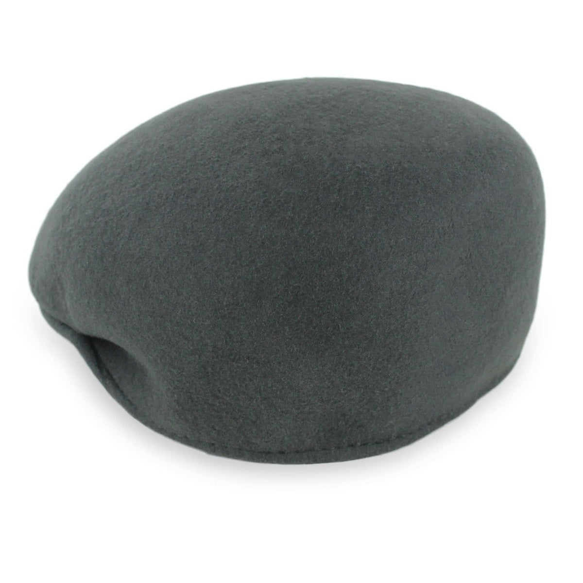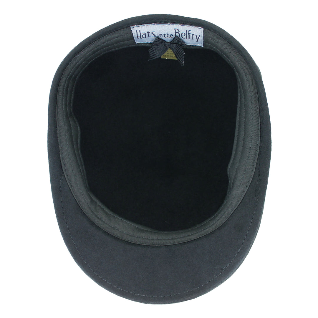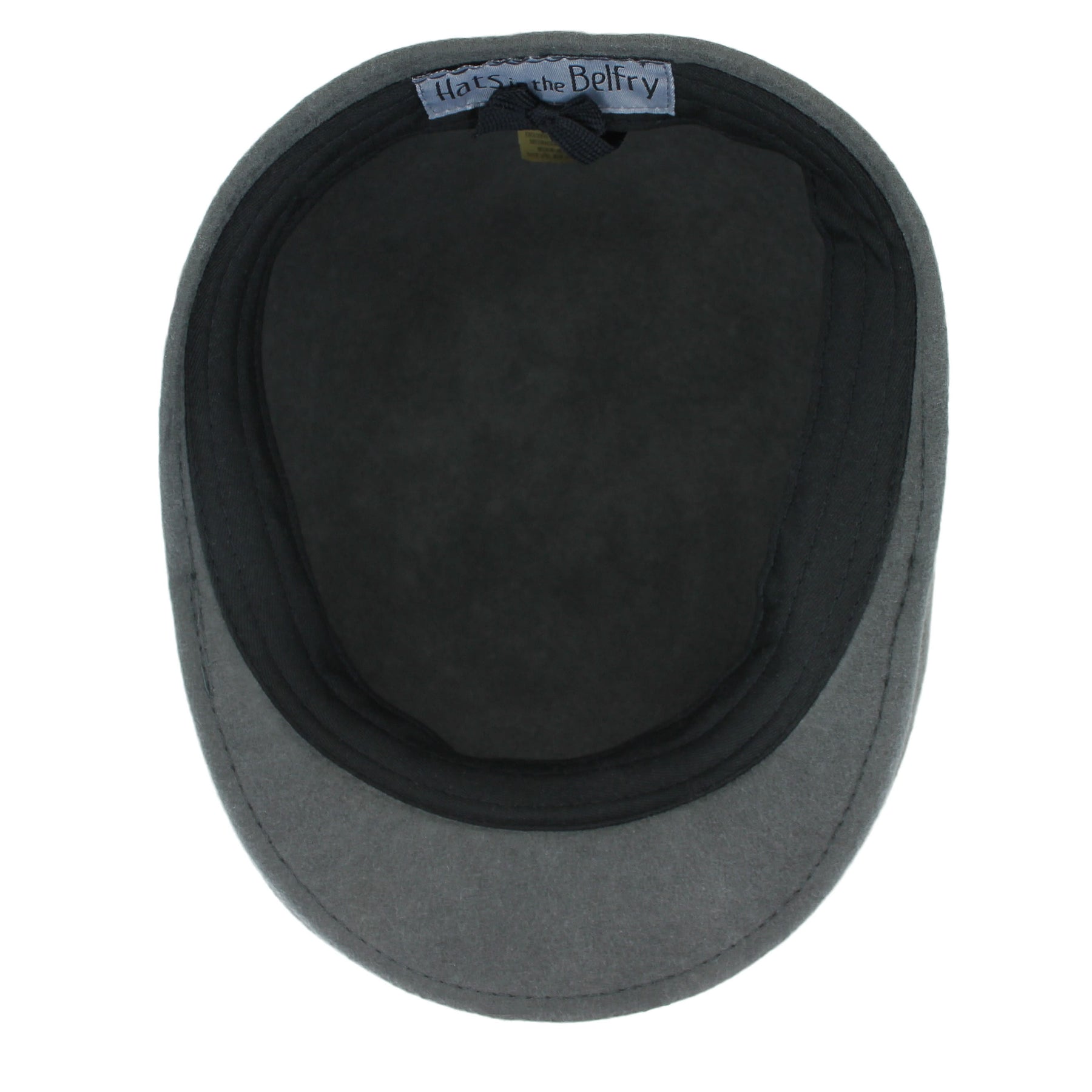 Belfry Ascot grey wool felt molded flat cap with higher silhouette and custom fit band