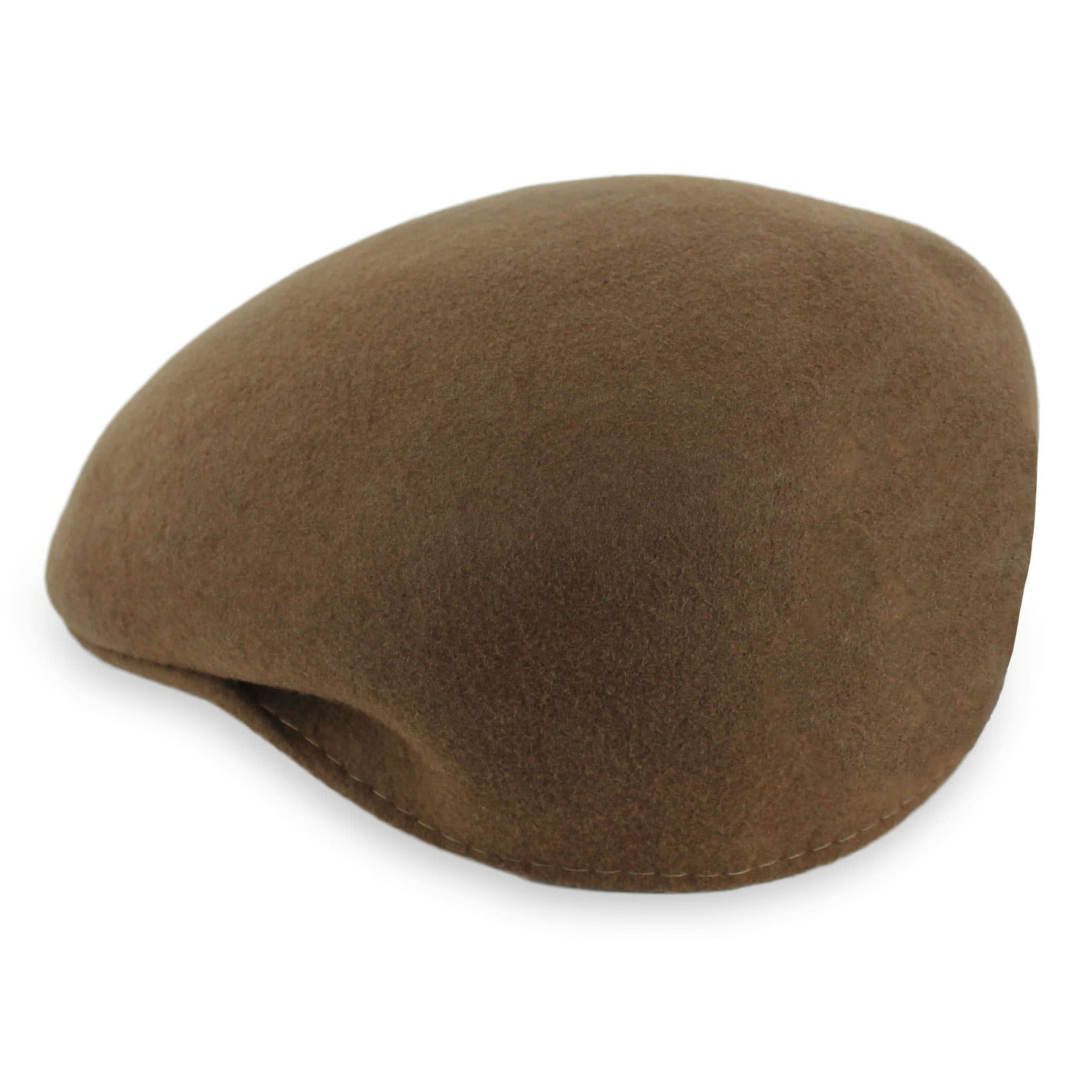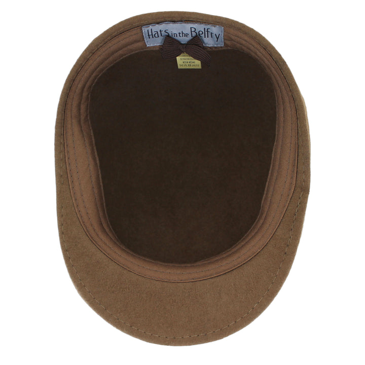 Classic Belfry Ascot pecan molded flat cap, 100% wool felt with custom inner band