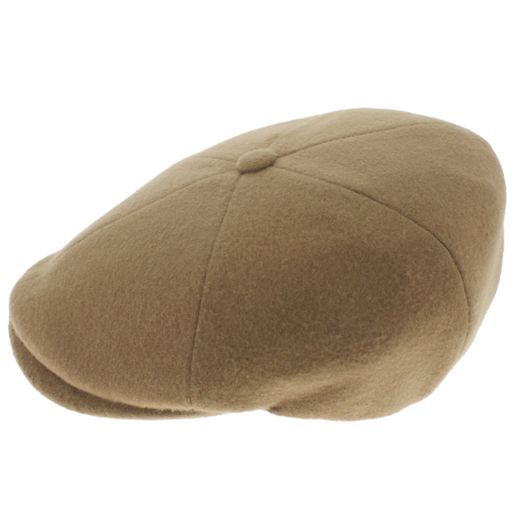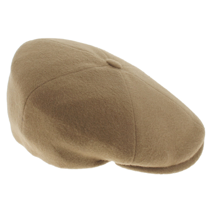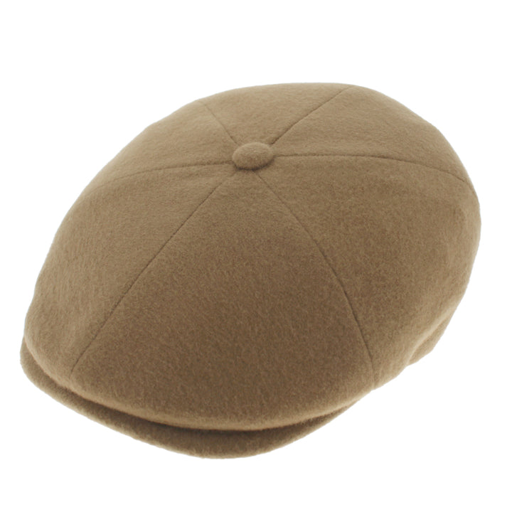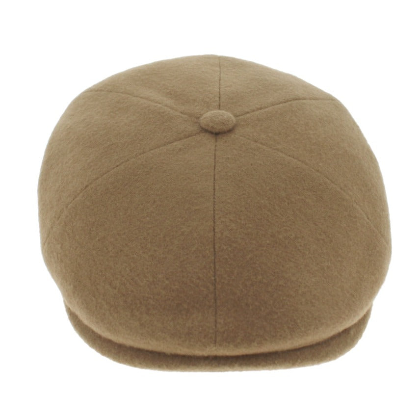 Belfry Capua tan cashmere newsboy cap with 6-panel slim design and slightly higher peak