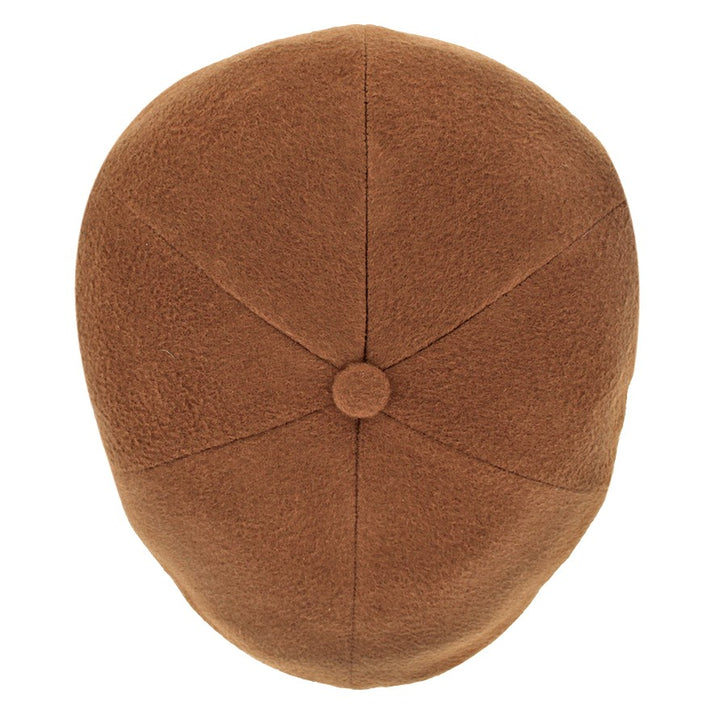 Camel Belfry Capua cashmere newsboy cap, lined interior for warm and stylish seasonal wear