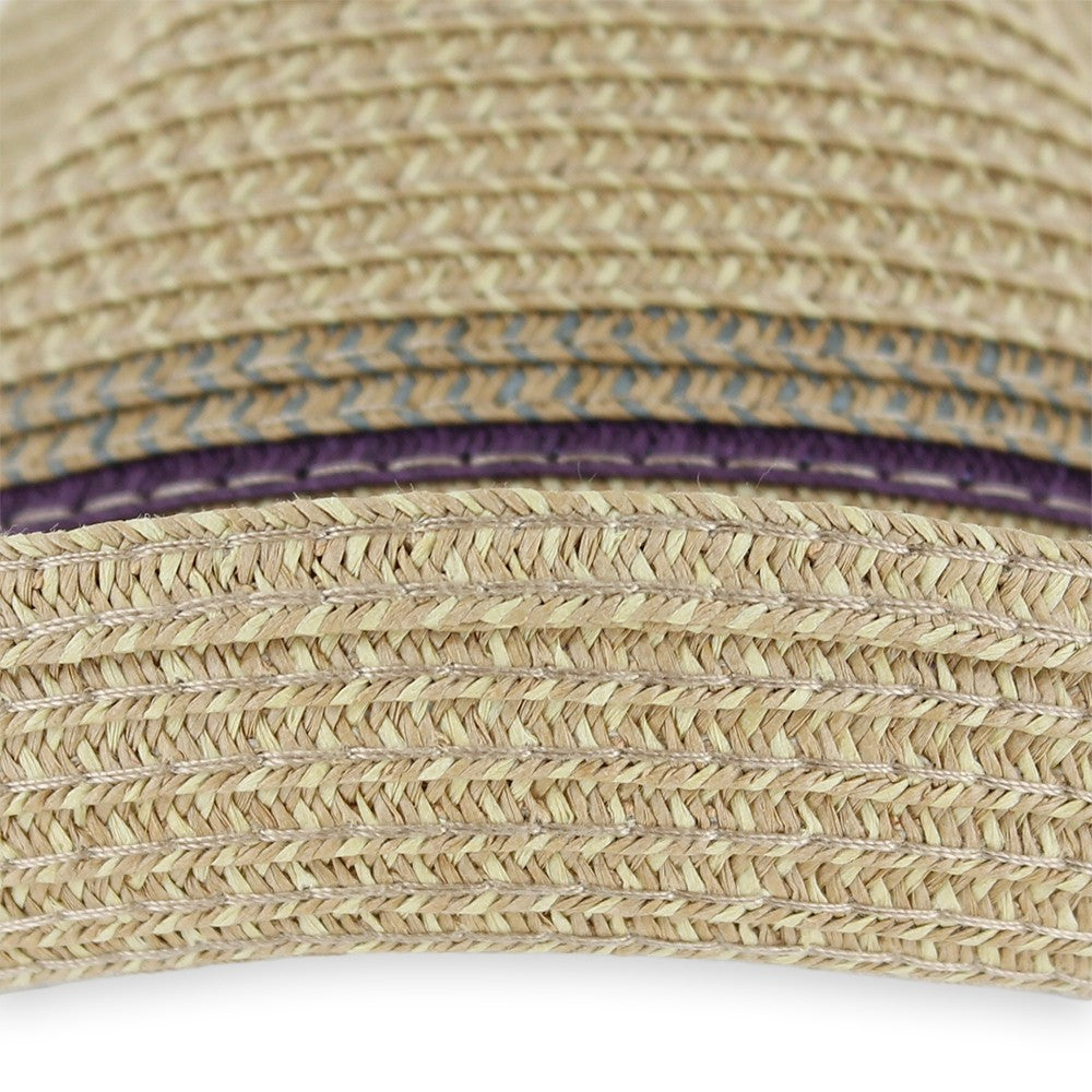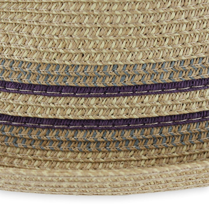 Durable Storm Cloud color Dax fedora hat with stingy brim and flexible paper straw weave, designed for worry-free packing