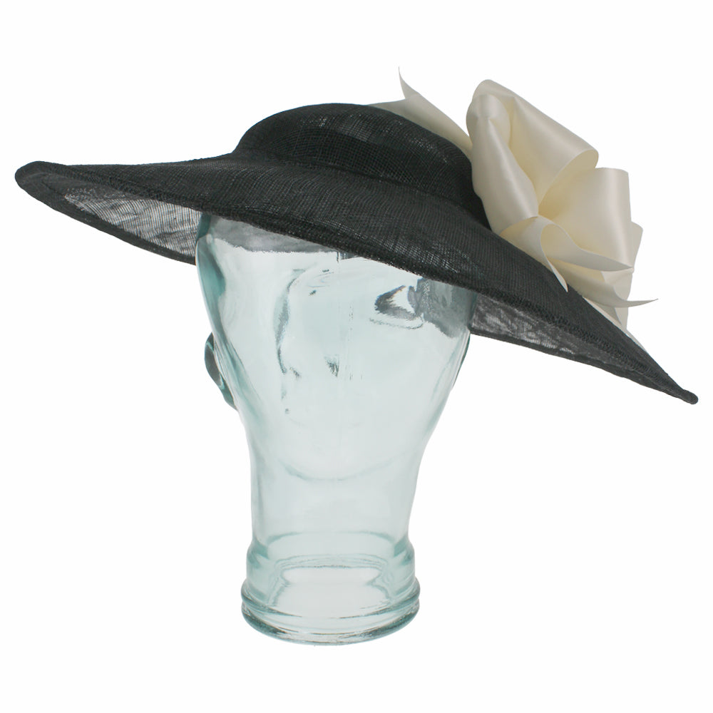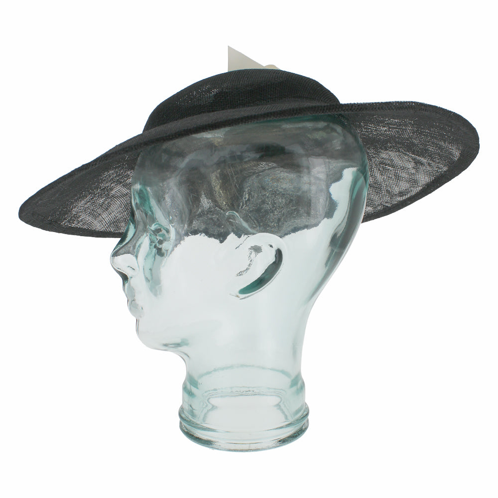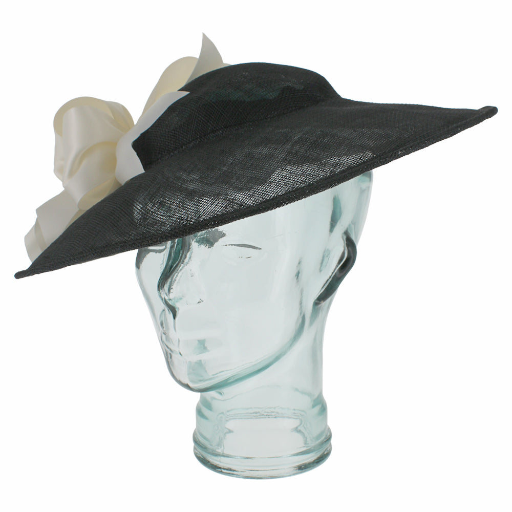 The Belfry Lydia is the perfect combination of classic and chic. This disc fascinator comes in a finely woven sinamay that is rich - nearly black - dark navy in color and contrasted with a romantic tumble of its ivory bow. Utilizing an elastic band that can easily be hidden by styling your hair, it not only ensures the Lydia stays securely in place all day long, but also allows optimal play with just how you wish to wear it.