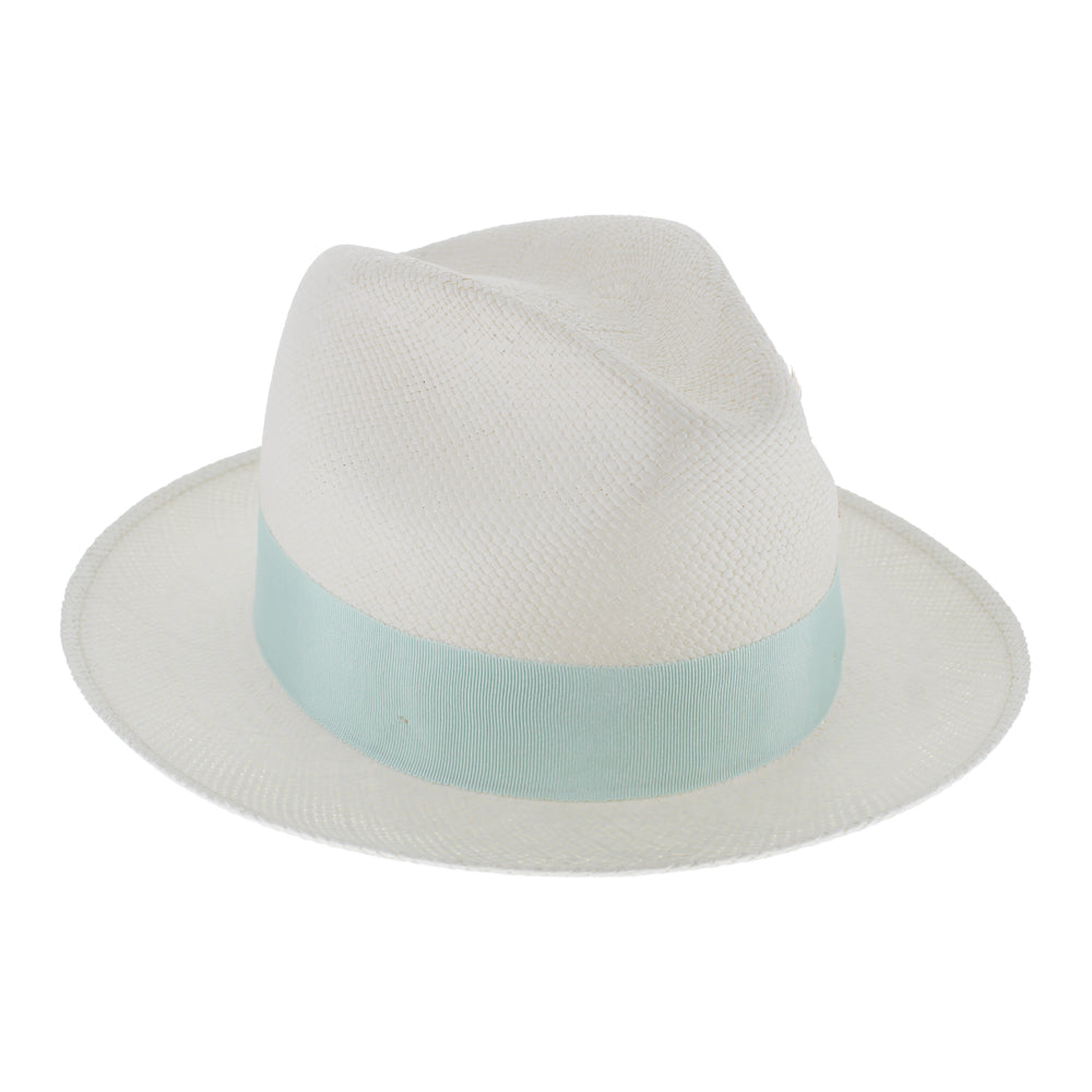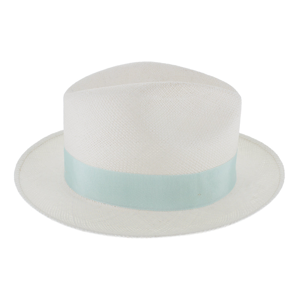 Bleach white Panama straw fedora for summer by Belfry St. Thomas